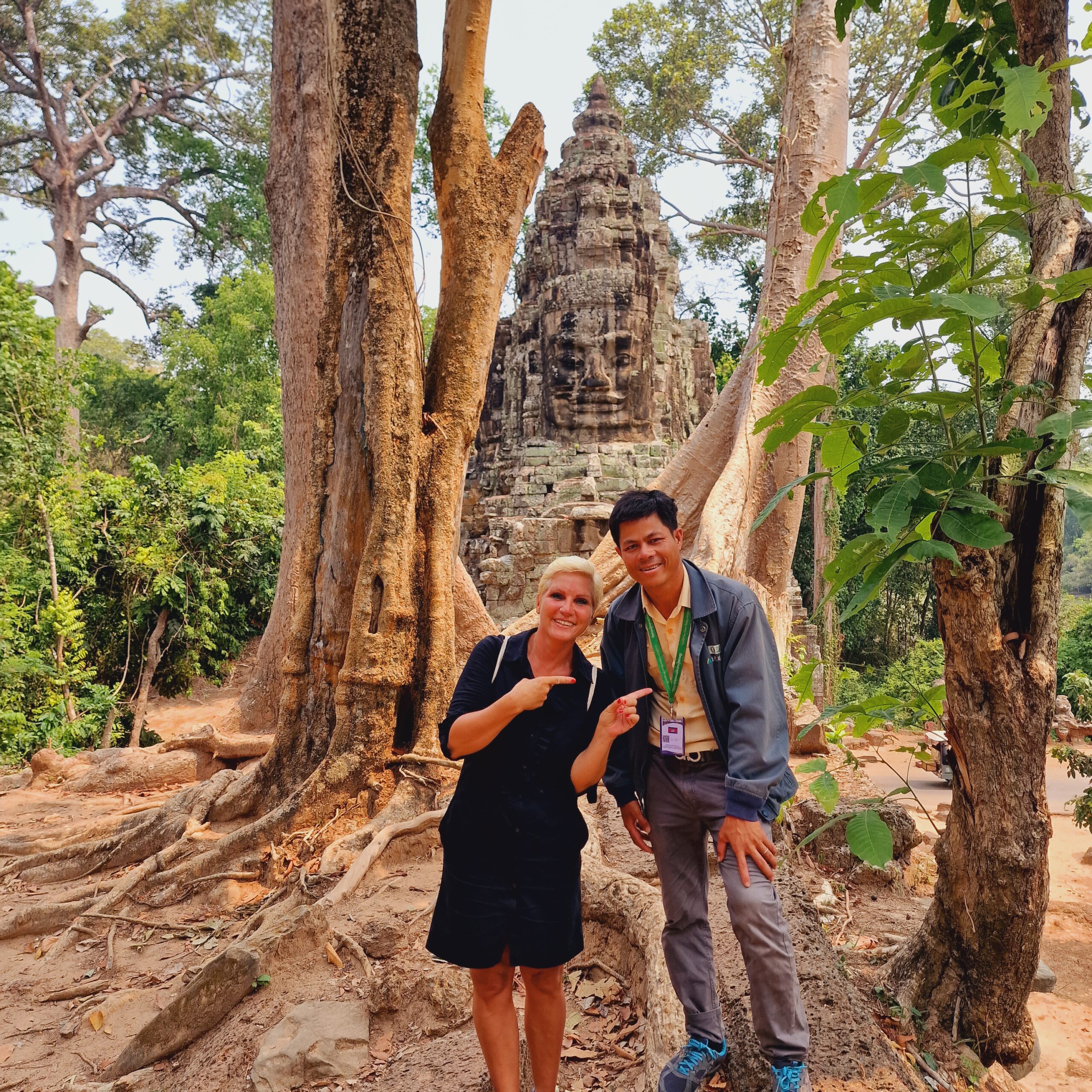 Am nächsten Tag organisierte mir der Concierge im Hotel einen Guide namens Boy für Angkor Wat, welchen er mir wärmstens empfehlen könne. Mein einziger großer Wunsch: ich möchte zum Sonnenaufgang am Tempel sein. Gesagt/getan. Mein Guide holte mich pünktlich um 04.30 ab. Wir organisierten das Ticket, da die Schalter am Tempel bereits geöffnet haben, und wir standen um 05.15 pünktlich zum Sonnenaufgang an dem bekannten Weiher vor dem Tempel! Mit weiteren hunderten von Menschen 😅. Es waren bereits weit über 30 Grad, und Boy empfahl mir seine 3 Lieblingstempel. Ich hatte mir einige Wochen zuvor einen Zeh gebrochen, und war daher auch sehr dankbar, nicht mehr Tempel durchwandern zu müssen. Es war ein grandioser Tag! Ein Kindheitstraum ging für mich in Erfüllung. Ich stand am Angkor Wat und sah sehr viel von den drei großen Tempelanlagen. Wir unterhielten uns viel, und ich erhielt auch Einblick in sein Leben. Dieser Mann hatte ein extremes Wissen über die Historie, sprach fließend englisch, und hatte während der Corona-Zeit an den Restaurierungen an der Tempel Anlage mitgewirkt. Ich war wirklich beeindruckt. Die Arbeits-Situation sei allerdings verheerend. Er brachte mich am späten Nachmittag zurück ins Hotel, und seine Worte rührten mich zum Schluss zu Tränen: „Danke, dass du mir heute einen Job gegeben hast.“ Ich kann diesen tollen Guide jedem nur wärmstens empfehlen! Kontaktiere mich hier gerne für die Telefonnummer.